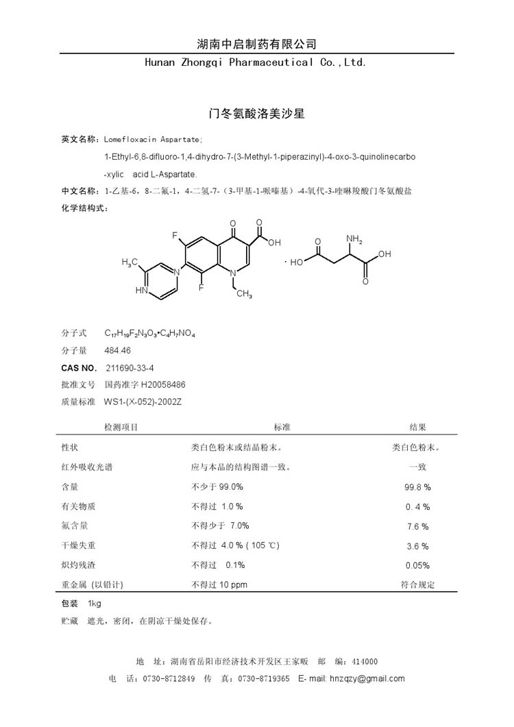 門冬氨酸洛美沙星